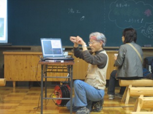 講師の鴻上泰先生。身ぶり手ぶりでわかりやすく説明してくれます。 参加した皆さんは「ほ〜」「うんうん」など熱心にうなづいていました。 |