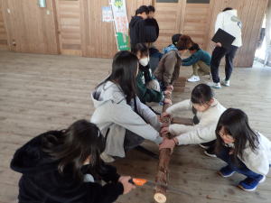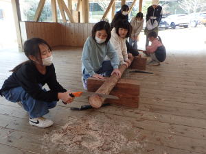 ノコギリ体験を通して、森林整備を学びました♪