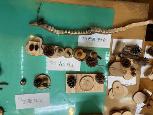木の実や間伐材等の森の恵みを使って昆虫や動物を作りました♪