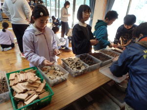 先月の森林の働きと山地災害の学習から、森林の恵みを受け取って作品作りをしました。