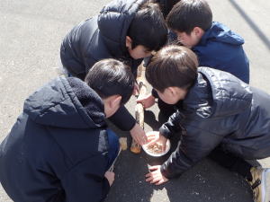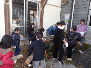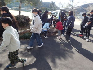 原木にシイタケの駒打ちを行い、シイタケを育てることにより自然の素晴らしさや森林の大切さを感じ、自然環境や森林・林業への重要性などの学習をしました。