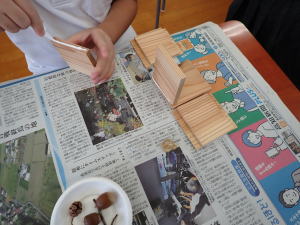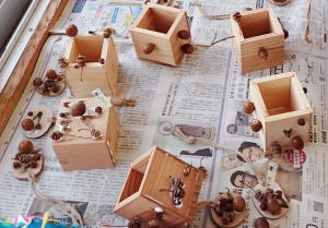 間伐材の板を組み立ててペン立てを作りました♪