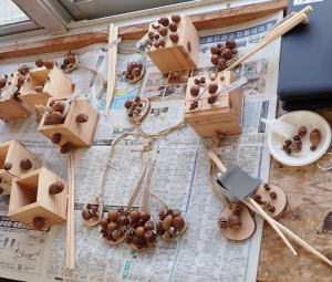 木を活かす木工クラフトを通して、香美市の山や林業に興味や関心を持ってもらおうと間伐材を使って、マイ箸やペン立て等を作りました。
