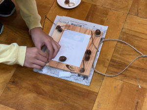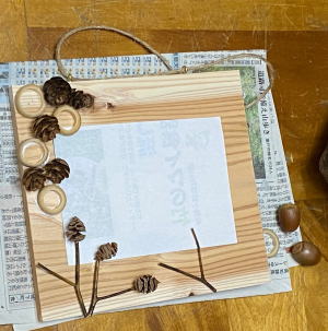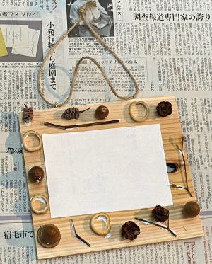 | 森林や自然に触れ、その大切さを感じることが出来る様に、森林の話、フォトフレ―ム作り、森林散策を行いました。 |