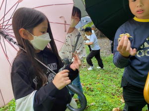 ![]() 雨の森林散策を楽しみました♪ (雷情報は出ていないことを確認して実施しました) |