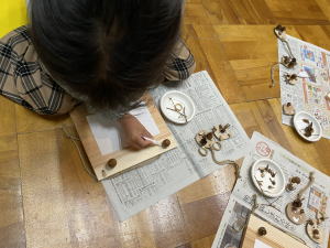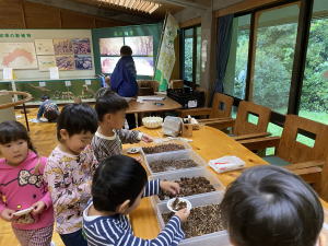 「木の実は、動物のおすそ分けです」の話を聞いて、慎重に材料を選んでいました。