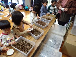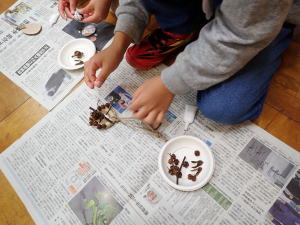 ![]() 「キ-ホルダ-の材料は、動物や森からのおすそ分けです♪大事に使いましょう」 |