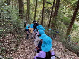 | 山の自然に触れ、興味や関心を持てるきっかけとしてキ-ホルダ-作りや森林散策を行いました。 |