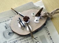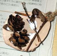 「材料の木の実や木の輪切り等は、自然の恵みのおすそ分けです」の話を聞いてから、作り始めました。