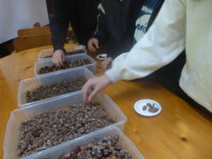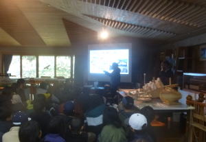 山や森、自然に触れ、自然環境に興味を持ち、大切さなどを感じることが出来る様に、森林の話や木の実などを使ったフォトフレ―ム作りを体験しました。