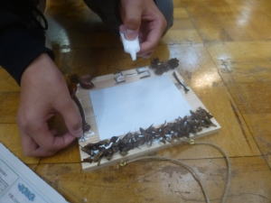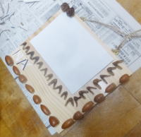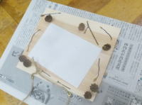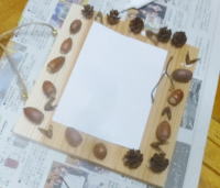 木の実等を貼り付けてフォトフレ―ムを作りました♪