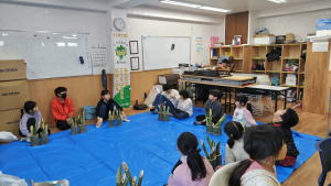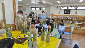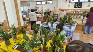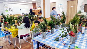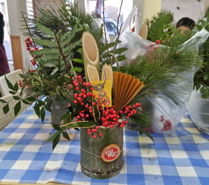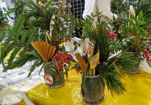 森林の話を聞き、山や自然に関心を持つ様にと、お正月に向けて竹などを使った門松づくりを体験しました。