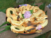 体験するのは、「うどん」・「バ-ムク-ヘン」・「野草のてんぷら」・「竹めし」の4種類を作る事です。材料をこねたり、集めたりすることからはじめて、完成させるまで全て自分たちで体験しながら、自給自足について考えようというものでした。
